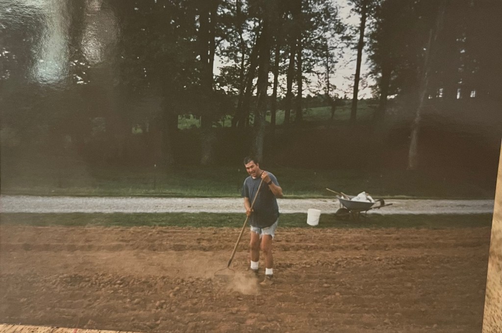 My dad would take this tiller out and start breaking up the ground… the grass, the hard spots of dirt, the clay… I would watch the wheels dig into them, uproot the grass patches, tearing apart the smooth green covering.